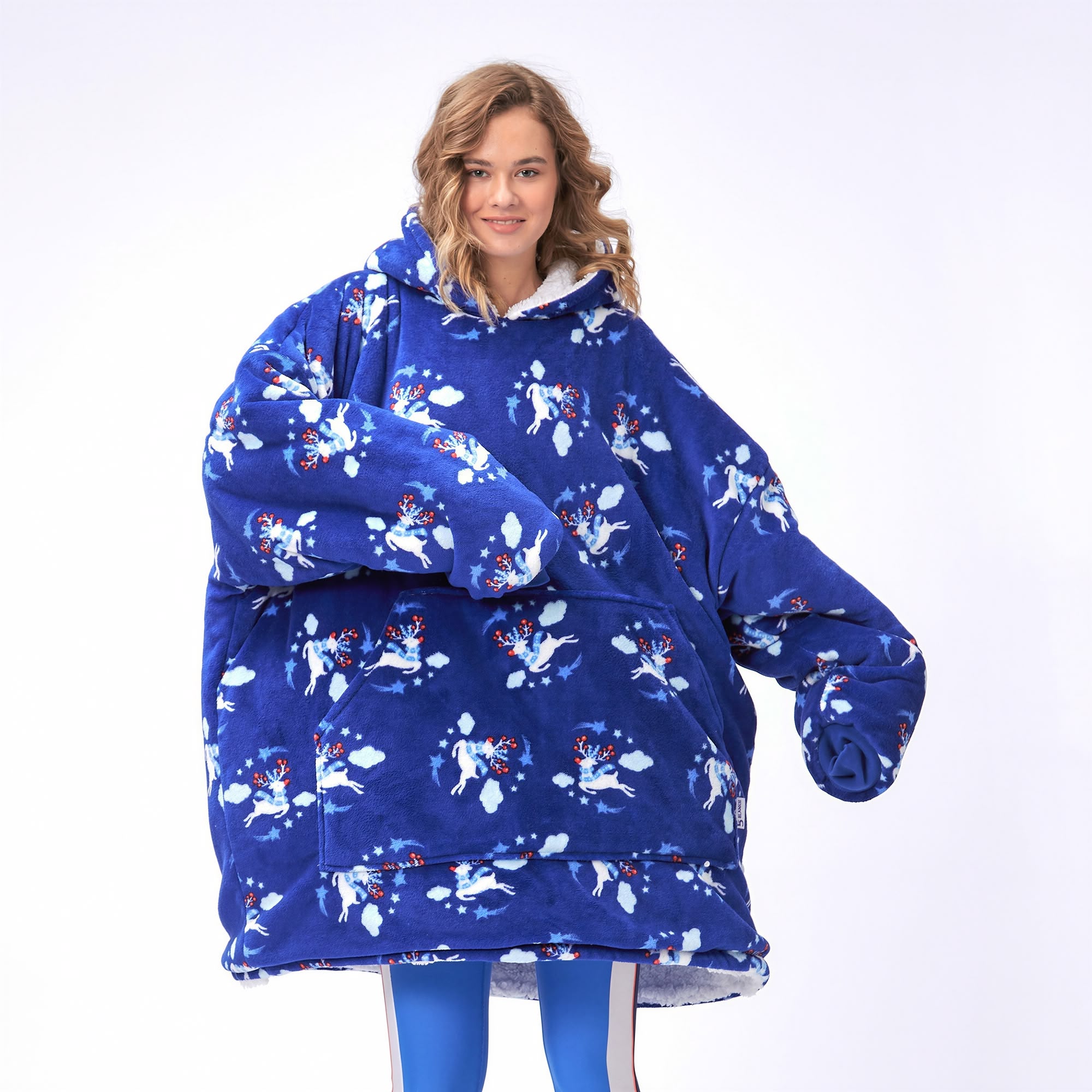Popular searches: winter deer hoodie, christmas blanket wear, nordic pattern clothing, winter wonderland fashion, blue snowflake hoodie, holiday comfort wear, winter animal print, festive blanket hoodie, christmas loungewear, winter forest pattern, cozy deer print, nordic style comfort