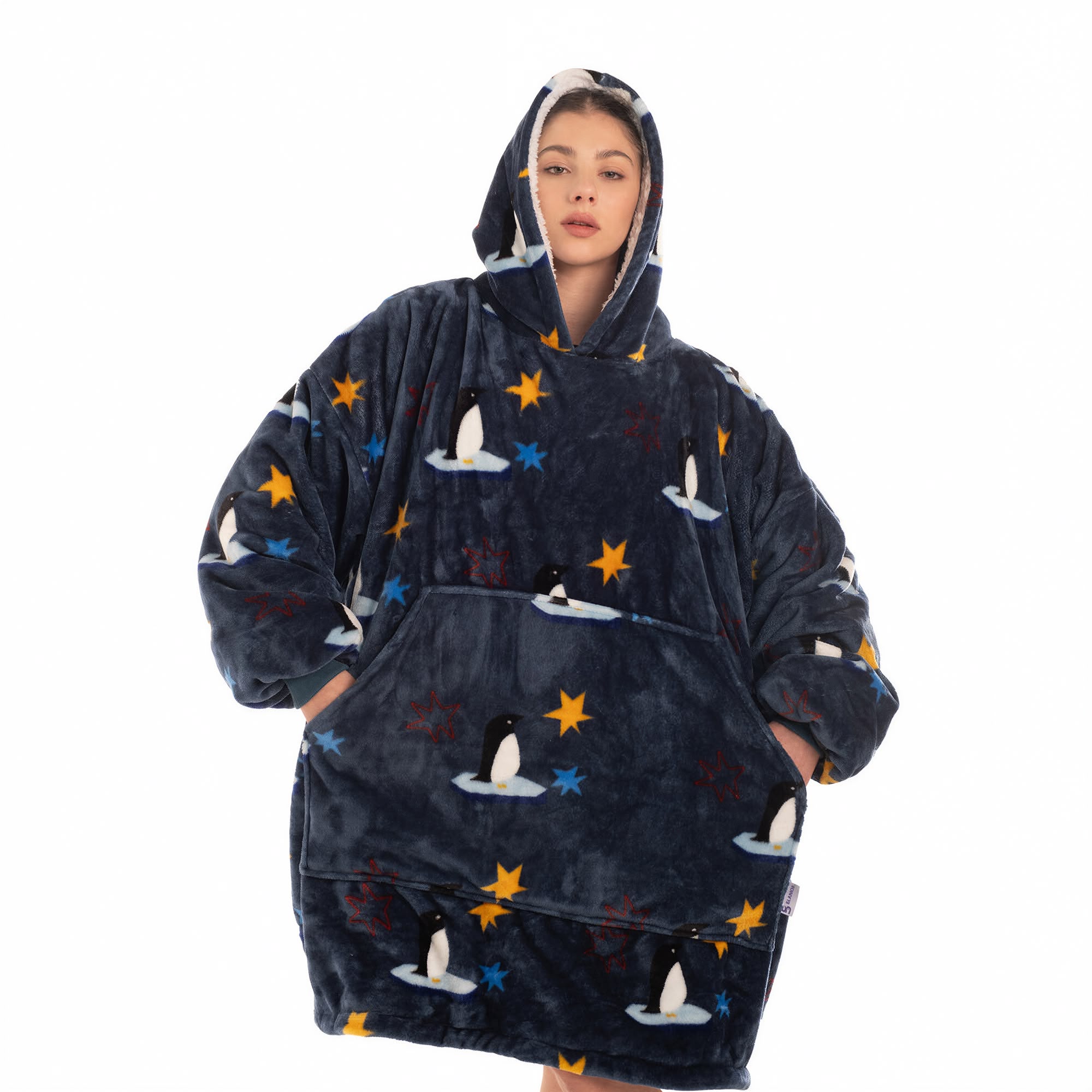 Experience an extraordinary level of comfort with our hoodie (175x95cm), inspired by stars and penguins. Perfect for those who seek a soft and warm embrace, while enjoying the beauty and magic of the cold nature.