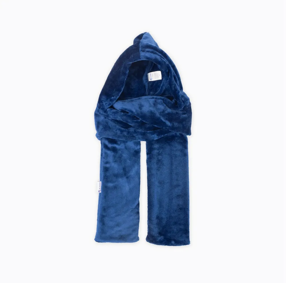 Feel the warmth with our dark blue hooded scarf, a perfect accessory to provide your neck with comfort and coziness.